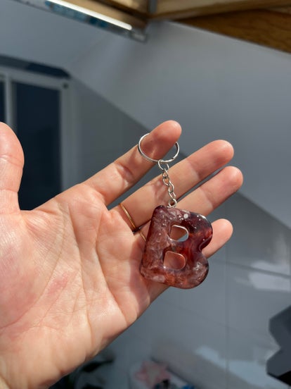 Llavero con inicial B en tono marrón marmolado. Edición limitada de solo una unidad.