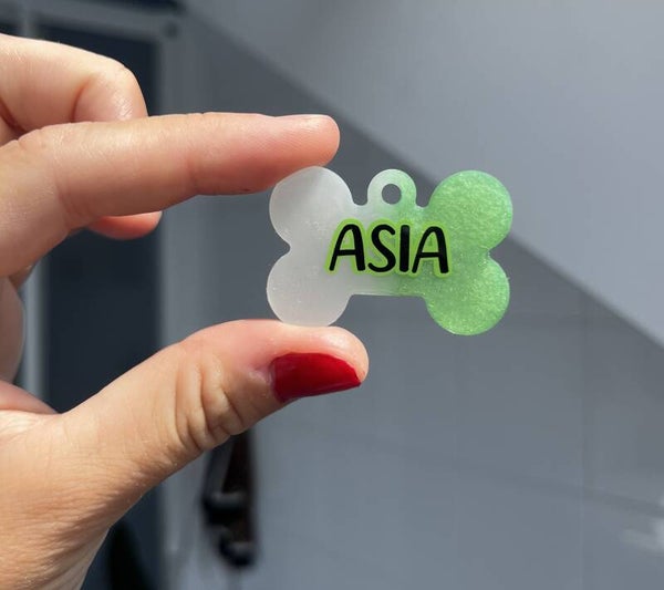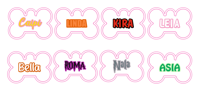 Al nombre se le puede añadir un pequeño reborde de otro color para resaltar más las letras. Hay varios ejemplos en la foto.